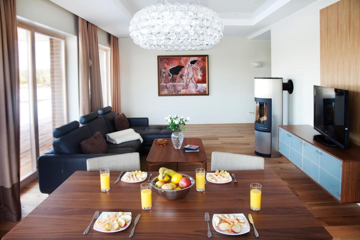 Situated within 8.9 km of Snow Arena and 11 km of Druskininkai Aquapark, Ami Residence features rooms with air conditioning and a private bathroom in Druskininkai. This beachfront property offers access to a balcony, a pool table, free private parking and free WiFi. Boasting family rooms, this property also provides guests with an outdoor fireplace.