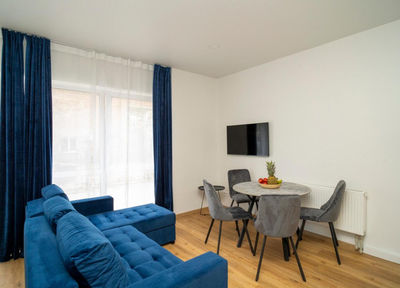 Apartment - Ground Floor. Featuring a private entrance, this apartment consists of 1 living room, 1 separate bedroom and 1 bathroom with a shower and a hairdryer. Guests can make meals in the fully equipped kitchen that features a stovetop, a refrigerator and kitchenware. The apartment provides a washing machine, soundproof walls, an electric kettle, a flat-screen TV, as well as city views. The unit offers 2 beds.